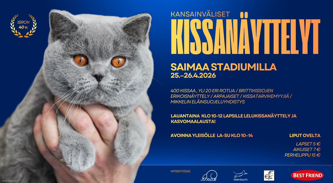 Lisätietoja kissanäyttelystä voit lukea tapahtuman Facebook-sivulta.