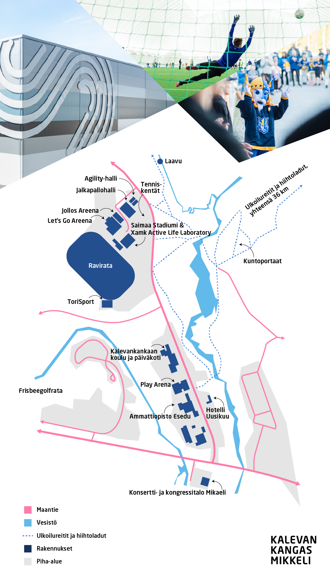 Saimaa Stadiumi sijaitsee hyvien kulkuyhteyksien päässä keskellä itäistä Suomea Mikkelin Kalevankankaalla.